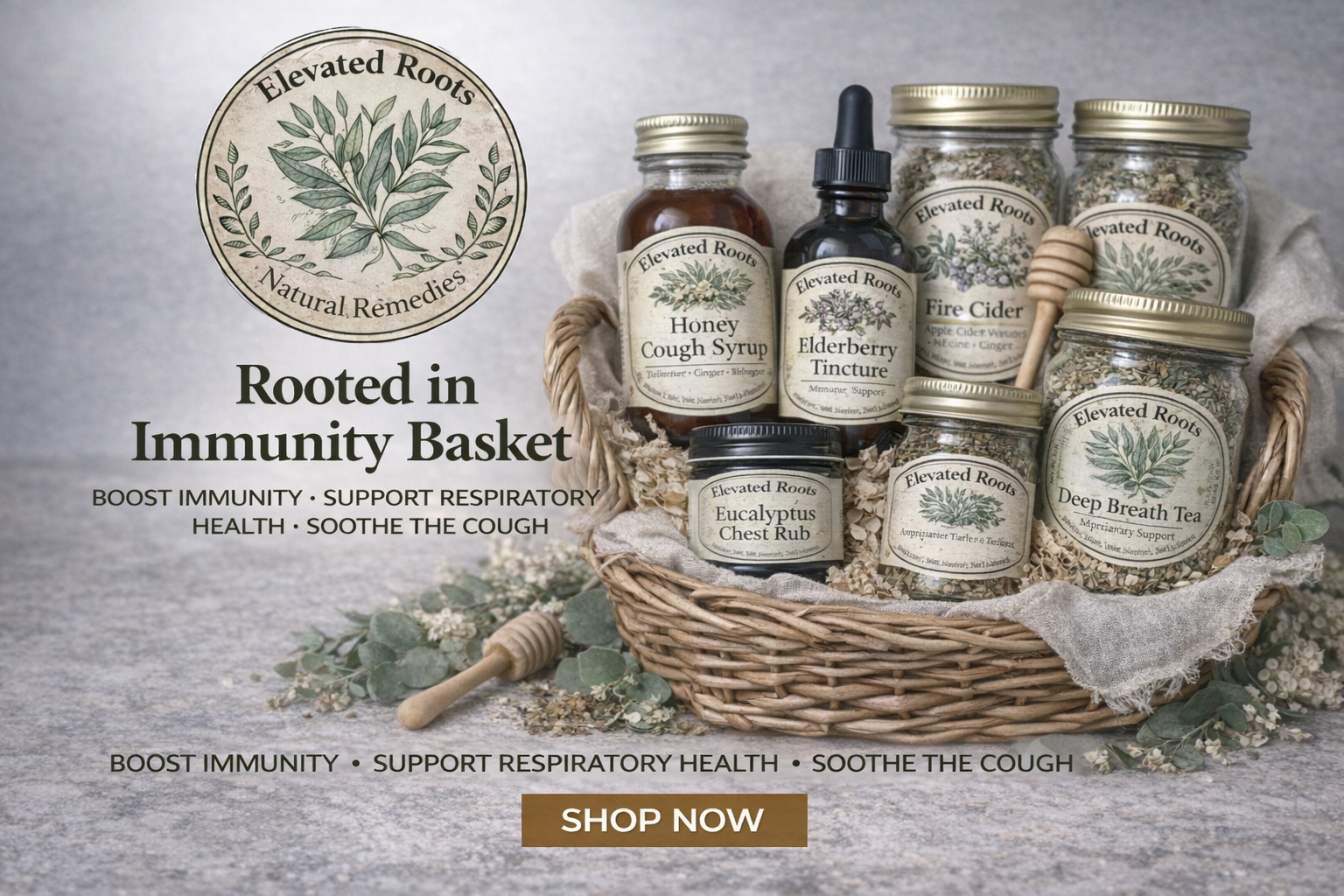 Support your home apothecary with our thoughtfully crafted Rooted in Immunity Basket — a collection of small-batch, herbal essentials designed to nourish the body and support seasonal wellness.